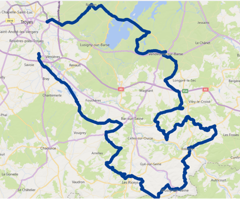 En route vers Thennelières, Laubressel Doches, par cette route offrant des perspectives à perte de vue, A Géraudot on entrevoit le lac qui n'a plus que 15% de sa capacité et qui est à une cote de moins 10,5 m par rapport à sa cote normale estivale. Mais pourquoi La loge aux "Chèvres", on n'y voit que des bovins, bon si les habitants ne voient pas la différence. Vendeuvre, Vendeuvre une demi-heure d'arrêt ! La caravane entre en gare avec un parfait rangement des motos devant le décor "octobre rose" pour Immortaliser, avec force appareils photos et smartphone notre passage en ce lieu. Continuation vers Puit et Nuisement, Beurey à travers la forêt, comme dans un tunnel de verdure, de place en place ouvert sur des parcs encore bien verts pour nous exposer au regard indifférents vaches ruminantes. Oui toutes ces belles couleurs de l'automne, qui commencent à décorer la forêt, me rendent l'âme un brin bucolique. Mais ce n'est que le début, nous pénétrons dans les coteaux de champagne Bertignole, Buxières, Ville sur Arce, Landreville, la variété de couleurs des vignes, du vert clair au rouge brique, mise en valeur par cette chaude lumière d'automne, donne envie de s'arrêter pour s'adonner à la contemplation. De vallons en vallons nous traversons Viviers sur Artaut, Chacenay, Noé les Mallets, Saint Usage, Fontette pour arriver à la pause à Essoyes. Mais avant, pour vérifier la concentration de pilotes avant d'autres découvertes, un petit passage sur gravillons était prévu au programme. Merci aux organisateurs de veiller à nous maintenir au top de la maitrise de notre engin. Petit goûter partagé dans la bonne humeur, puis Chrystelle et Brigitte qui avaient visité l'association "Solidarité Femme Aube" développent l'action de l'association et les aides et supports apportées aux victimes. Merci à elles pour leur engagement qu'elles ont rendu nôtre. Bien sûr aucun de nous n'a besoin de nous voir rappelé le respect dû aux femmes, nous sommes tous des gentlemans, mais ces informations, dont en premier lieu l'existence de l'association, pourront être communiquées à toute personne confrontée ces difficultés. Chacun a pu contribuer financièrement à soutenir l'association en déposant son obole. Mais d'où leur est venue l'idée, a priori saugrenue, d'engager la caravane dans les chemins de vignes. Peu importe ce fut une belle découverte avec des points de vue uniques, le nez dans ce magnifique assemblage de parcelles toutes de couleurs différentes. Quelle belle idée, Messieurs ! Nous voici donc rendu à Mussy sur Seine avant de prolonger vers Plaines saint Lange, les Riceys bas, Avirey-Lingey, Villemorien, Jully sur Sarce. Le soleil descendant sur l'horizon, rendait quelquefois la visibilité douteuse, mais les équipages bien entraînés ont redoublé de prudence. Rumilly, Vaudes, Saint Thibault et Carrefour de Buchères pour les au revoir.